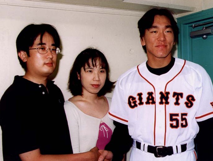 | (写真左:斉野あかりちゃんの両親 右:松井選手(巨人軍) 報知新聞の御協力により |